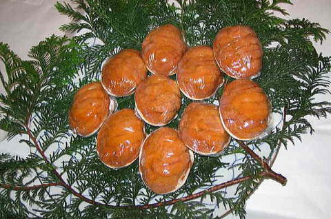| 貝の上にたっぷりのうにを詰め、焼き上げた香ばしさ抜群の浜の味になっています。香ばしく焼きあがっておりますので、そのままでお酒のつまみにも |